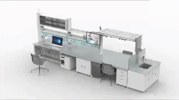 臺面上方預設了四個功能柱四面都可安裝功能配件,其間預留的管道也可方便連接水、電、氣路,滿足用戶開展實驗的各種需要。